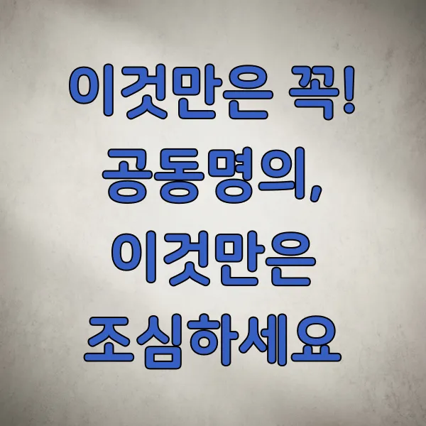 장점만 보고 덜컥 공동명의로 바꿨다가 낭패를 보는 경우도 있거든요. 몇 가지 꼭 알아두셔야 할 주의사항이 있어요.